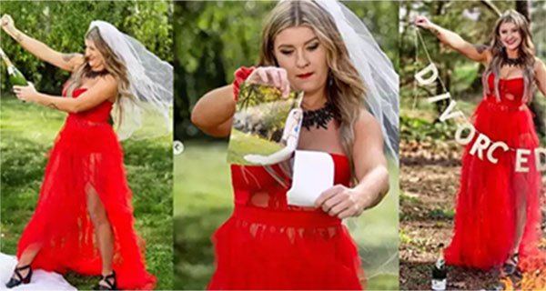 திருமண டிரஸ்ஸையும், போட்டோக்களையும் எரித்து விவாகரத்தை கொண்டாடிய இளம்பெண் : குவியும் வாழ்த்துக்கள்!!