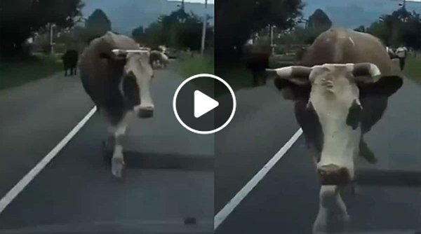 பசு ஒன்று வ ளைந் து நெ ளி ந்து நடனம் ஆடிக் கொண்டு நடப்பது ஒரு வீடியோவில் ஒளிப்பதிவு செ ய்ய ப்பட்டுள்ளது.