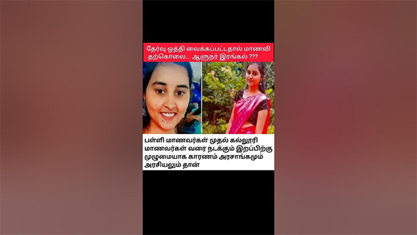 முதன்மை செயலாளர், டி.ஜி.பி. மற்றும் செயலாளருக்கு உத்தரவிட்டு உள்ளார். தேர்வு ஒத்தி வைக்கப்பட்டதால் மாணவி தற்கொலை செய்து கொண்டது அப்பகுதியில் பெரும் சோகத்தையும் அதிர்ச்சியையும் ஏற்படுத்தியுள்ளது.