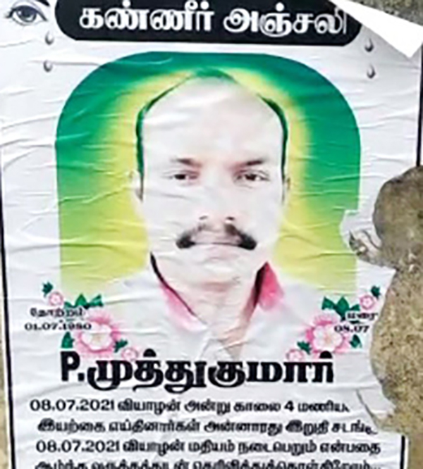 முகத்தில் லேசான காயம் இருந்ததால் த.வறி விழுந்ததில் அ.டி.பட்டு இ.ற.ந்திருக்கலாம் என கருதப்பட்டது. ஆனால் அவரது மைத்துனர் ராஜேஷ், முத்துக்குமாரின் சாவில் ம.ர்.மம் இருப்பதாக போ.லீசில் பு.கார் அளித்தார்.