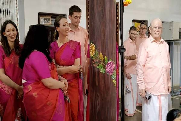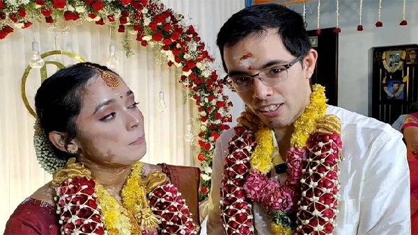 இந்நிலையில், நேற்று காலை காரைக்குடியில் செட்டிநாட்டு நகரத்தார் பாரம்பரிய முறைப்படி மாக்கோலம், மாவிலை தோரணம், அரசனிக்கால் மணவறை, நாதஸ்வர இசையுடன் கெட்டிமேளம் முழங்க இருவருக்கும் திருமணம் நடைபெற்றது. அப்போது சாமின் பெற்றோர்கள் மற்றும் உறவினர்கள் தமிழ் பாரம்பரிய உடையில் வந்து உற்சாகத்துடன் மணமக்களை வாழ்த்தினர்.