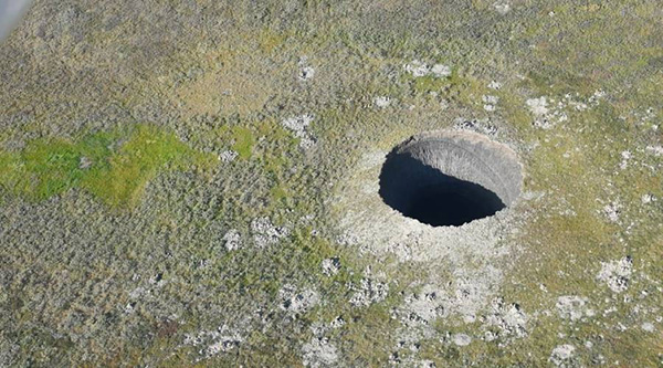 சைபீரியாவில் உள்ள தந்த்ரா பகுதியில் தொலைக்காட்சிக் குழுவினர், சுமார் 100 அடி ஆழமும், 70 அடி விட்டமும் கொண்ட பிரமாண்டமான பள்ளம் ஒன்றினைப் படம் பிடித்தனர்.