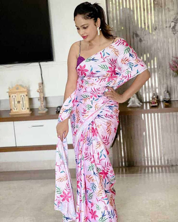 இதை தொடர்ந்து, தற்போது வழுவழு புடவையில் குளுகுளு போஸ் கொடுத்து ரசிகர்களின் கண்களுக்கு கவர்ச்சி விருந்து வைத்துள்ளார்.