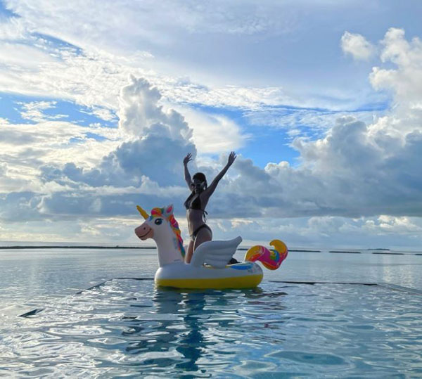 சமீபத்தில் தோழிகளுடன் மாலத்தீவிற்கு சென்று கவர்ச்சி புகைப்படத்தை பகிர்ந்தார். தற்போது நீச்சல் உடையணிந்து கிளாமர் போஸ் கொடுத்து புகைப்படத்தை பகிர்ந்துள்ளார்.