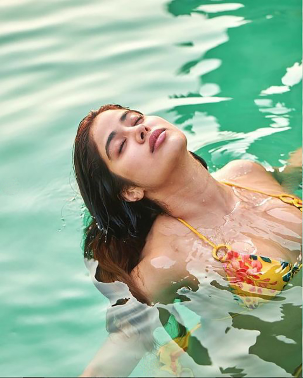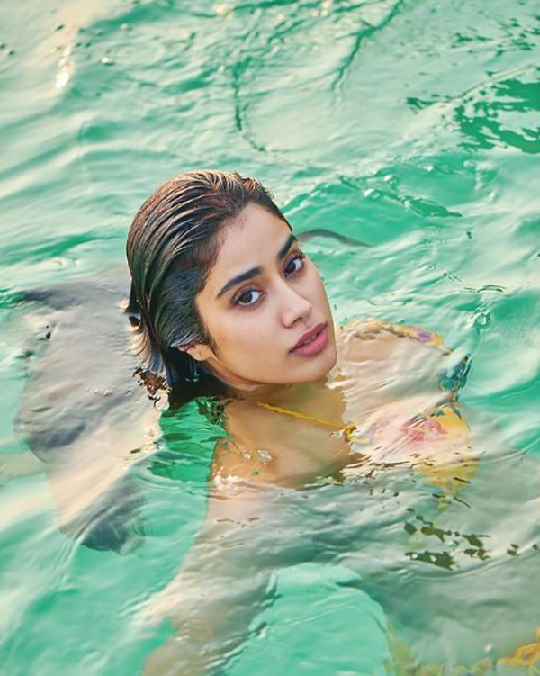 நீச்சல் உடையில் புகைப்படங்களை வெளியிட்டு ரசிகர்களின் சூட்டை கிளப்பிய ஜான்வி கபூர்!!