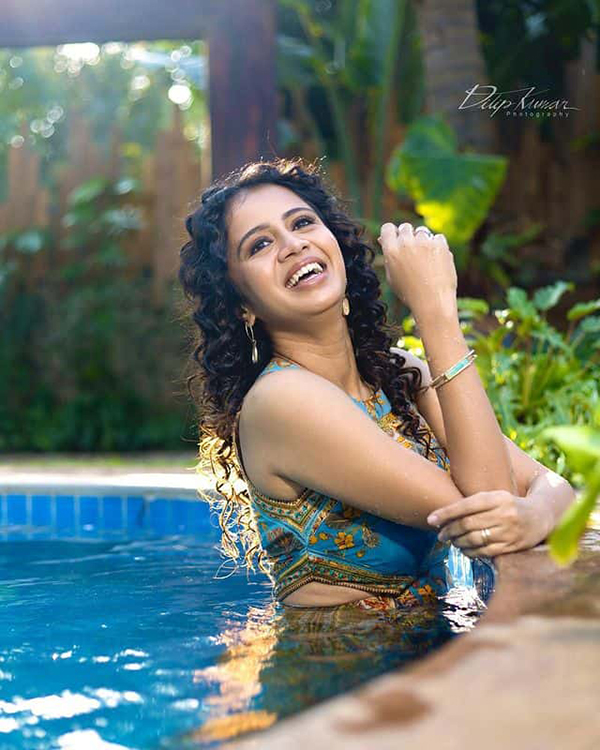 அந்த வகையில், தற்போது, நீச்சல்குளத்தில் எடுக்கப்பட்ட புகைப்படங்களை பதிவிட்டு ரசிகர்களை சுண்டி இழுத்துள்ளார்.