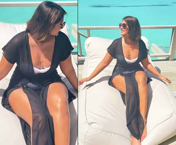 இந்நிலையில் தற்போது நீச்சல் குளத்தில் அமர்ந்து பிகினி உடையில் கருப்பு வேலை கவர்ச்சி காட்டி கதற வைத்துள்ளார். இருந்தாலும் கலர்ல காட்டியிருக்கலாம்…!