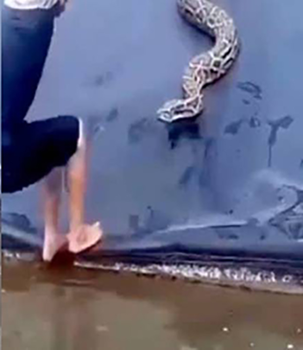 அப்போது எதிர்பாராத விதமாக பெரிய மலைப்பாம்பு ஒன்று மேலிருந்து இளைஞரை நோக்கி பாய்ந்து சீறிக்கொண்டு வருகிறது.