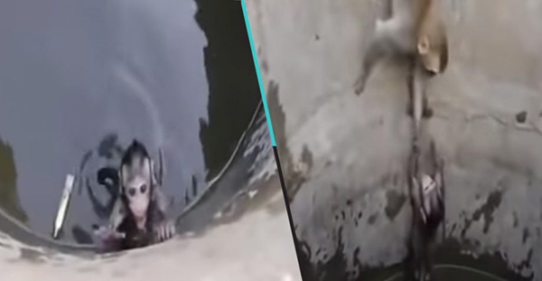 கடைசியில் தாய் குரங்கு தன் இருகைகளையும் தொட்டியின் மேல் பகுதியில் இறுகபற்றிக்கொண்டு பின்பக்கமாக நின்றவாறு தன் வாலை நீட்டியது. கடைசியில் தாய்குரங்கின் வாலைப்பிடித்தவாறு குட்டி மேலே சென்றது. குறித்த இந்தக்காட்சி இணையத்தில் வைரலாகிவருகிறது.