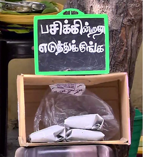 இந்த நிலையில், கடந்த நான்கு நாள்களாகக் கடைக்கு முன்பு உள்ள பெட்டி ஒன்றில் பிரியாணி பொட்டலங்களை வைத்துள்ள சப்ரினா, அதன் அருகிலேயே, ’பசிக்குதா எடுத்துக்குங்க’ என்று கரும்பலகையில் எழுதி வைத்துள்ளார். அந்தப் பெட்டியில் வைக்கப்பட்டுள்ள பிரியாணி பொட்டலங்களை ஆதரவற்றவர்கள் மற்றும் ஏழை எளியவர்கள் விலை இல்லாமல் எடுத்துச் சென்று சாப்பிட்டு பசியாறுகின்றனர்.