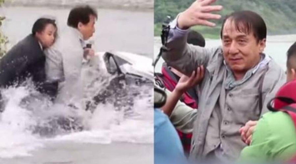 ஆனால், ஜாக்கி சானை எங்கும் காணவில்லை. அதனைத் தொடர்ந்து பதறிப்போன பாதுகாவலர்கள் தண்ணீரில் குதித்து ஜாக்கிசானை தேடிய நிலையில் 45 வினாடிகளுக்கு பிறகு பாறையின் அடியில் சிக்கிக்கொண்ட அவர் பாதுகாப்பாக மீட்கப்பட்டார்.