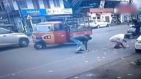 இதைப் பார்த்த பொதுமக்கள் சிலர் தங்கள் வாகனங்களை நிறுத்தி பணத்தை சாலையிலிருந்து அள்ளி செல்லும் சிசிடிவி காட்சிகள் தற்போது வெளியாகி வைரலாகி வருகின்றன.