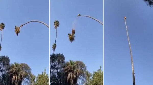 அதில், பனை மரத்தின் உச்சியில் அமர்ந்திருக்கும் நபர் ஒருவர் மரத்தின் மேல் பகுதியை வெட்டிவிடுகிறார். மரம் அங்கும் இங்கும் அசைகிறது. அதைப் பார்க்கும் நமக்கே பீதி ஏற்படுகிறது. ஆனாலும் அந்த நபர் நிலை தடுமாறாமல் மரத்தின் மீதே அமர்ந்துள்ளார்.