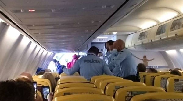 கடந்த வெள்ளியன்று, லிவர்பூல் விமான நிலையத்திலிருந்து காலை 6.29 மணிக்கு புறப்பட்ட ரியானைர் நிறுவன விமானத்தில் பின்பக்க இருக்கையில் இருந்த பயணி ஒருவர் க டுமையான வா க்குவாதத்தில் ஈடுபட்டதன் காரணமாக விமானம் பாதி வழியிலேயே தரையிறக்கப்பட்டது.