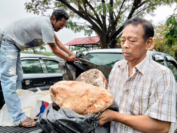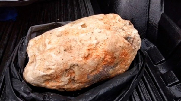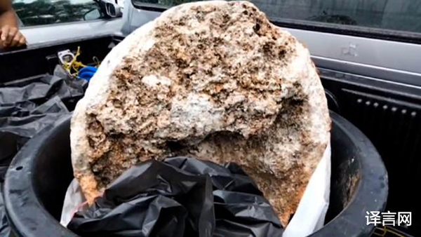 அப்போது ஒரு பகுதியில் பாறை போன்ற வெளிர் நிற கட்டிகள் கரை ஒதுங்கிக் கிடந்துள்ளது. ஒரு சந்தேகத்தின் அடிப்படையில், தமது உறவினரின் உதவியால், அந்த மொத்த கட்டிகளையும் அவர் சேகரித்து குடியிருப்பு கொண்டு வந்துள்ளார்.