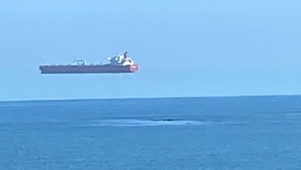 ஆனால், கப்பல் பார்ப்பதற்கு தண்ணீரில் இருப்பது போன்று தெரியவில்லை.மாறாக வானத்தில் மிதப்பது போல் காட்சியளித்தது. இந்தப் படம் தான் இப்போது இணையத்தில் வேகமாகப் பரவி வருகிறது.