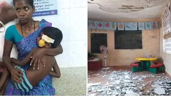 இந்த கட்டிடத்தின் மேற்கூரை திடீரென இடிந்து விழுந்த சம்பவம் பெற்றோர்களிடம் அதிர்ச்சியை ஏற்படுத்தியுள்ளது. அப்போது பள்ளியில் இருந்த சிறுவன் விமல்ராஜீக்கு காயம் ஏற்பட்டுள்ளது. இதனையடுத்து அருகில் இருந்தவர்கள் சிறுவனை மீட்டு திருத்தணி அரசு மருத்துவமனையில் தீவிர சிகிச்சையில் அனுமதித்தனர்.