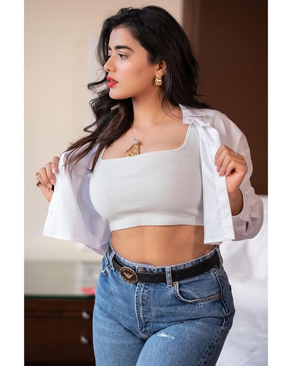 இந்நிலையில், ஜீன்ஸ் பேண்ட் மற்றும் முன்னழகை கவர்ச்சியாக காண்பிக்கும் உடையை அணிந்து போஸ் கொடுத்து அவர் பகிர்ந்துள்ள புகைப்படங்கள் இணையத்தில் வைரலாகி வருகிறது.