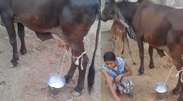 அது என்ன தெரியுமா? ஒரு பசுமாடு தானே பால் கறக்கிறது. அந்த மாட்டை வளர்ப்பவர் அதன் மடிக்கு நேராக பாத்திரத்தை மட்டுமே வைக்கிறார். இதோ அந்த வீடியோ…நீங்களே பாருங்கள்…