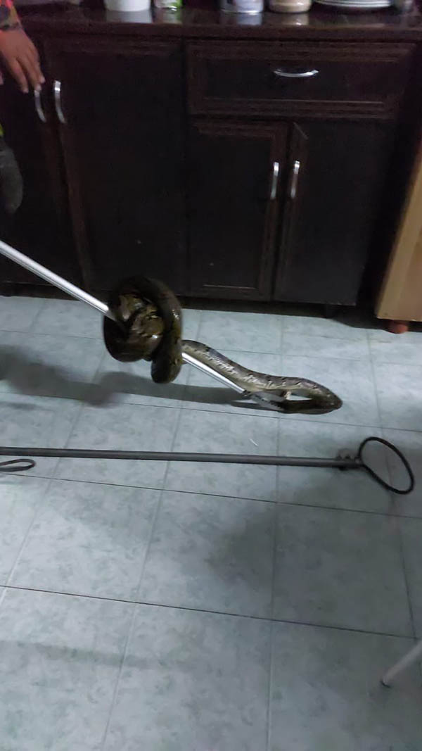 பின்னர் உடனடியாக தீயணைப்புத்துறையினருக்கு தகவல் தெரிவித்துள்ளார். தகவலறிந்து வந்த தீயணைப்பு வீரர்கள் மலைப்பாம்பை பிடித்து வனப்பகுதிக்குள் விட்டனர்.