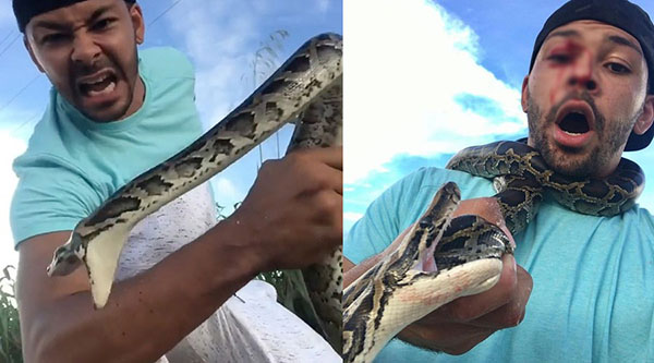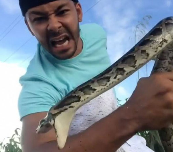 லாஸ் ஏஞ்சல்ஸைச் சேர்ந்த பாம்பு பிடிப்பவரான Nick Bishop (32) என்பவர் ப்ளோரிடாவில் மலைப்பாம்பு ஒன்றைப் பிடித்துள்ளார்.