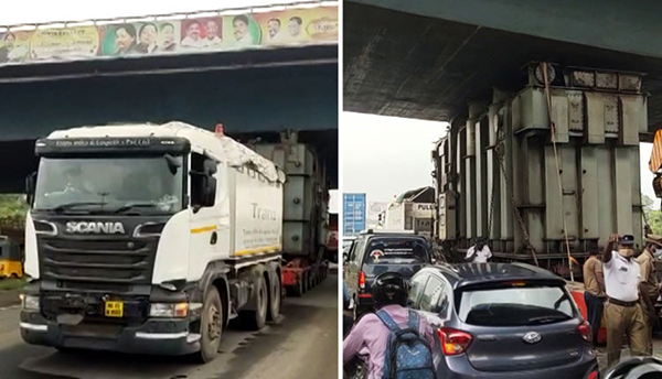 சென்னை துறைமுகத்தில் இருந்து ஸ்ரீபெரும்புதூர் கொண்டு செல்லப்பட்ட அந்த மின்மாற்றியின் மேற்பகுதி மதுரவாயல் மேம்பாலத்தின் கீழ் சி க் கி நகர முடியாமல் நின்றது.