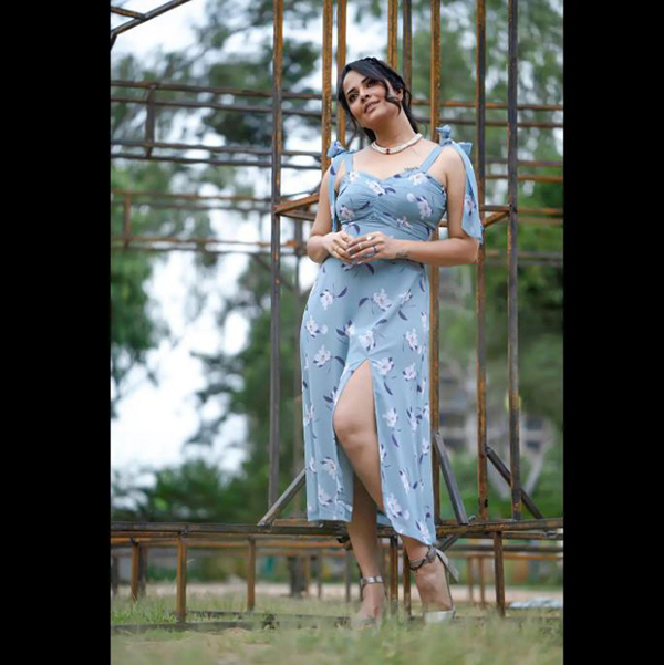 இந்த அமளிதுமளி எல்லாம் ஒருபக்கம் இருந்தாலும் தன்னுடைய அன்றாட பணியை செவ்வனே செய்து வருகிறார் அம்மணி. தொடர்ந்து கவர்ச்சியான புகைப்படங்களை இணையத்தில் வெளியிடுவதுதான் இவருடைய அன்றாட பணி. அந்த வகையில் தற்போது கவுன் அணிந்து கொண்டு தன்னுடைய பாவாடையை ஒரு பக்கம் கிழித்து விட்டு தன்னுடைய தொடை அழகை எடுப்பாக தெரிய நின்று இருக்கும் இவரது புகைப்படங்கள் இணையத்தை கலக்கி வருகின்றது.