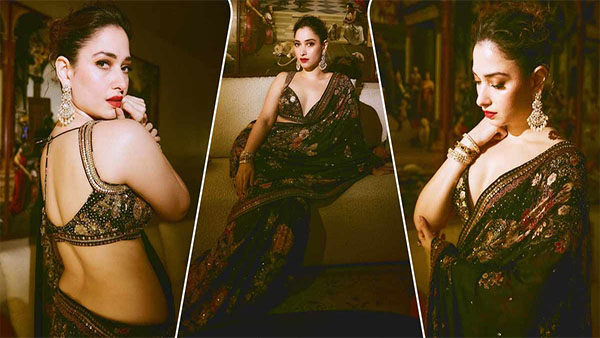 தகதக மேனிக்கு சொந்தக்காரியான தமன்னா இந்த ஆண்டு ரஜினிகாந்தின் செயலர் படத்தில் இடம்பெற்ற காவலா பாடலுக்கு கவர்ச்சி உடையில் ஆட்டம் போட்டு ஒட்டுமொத்த ரசிகர்களையும் கிழங்க அடித்தார். இந்நிலையில் தற்போது, இன்ஸ்டாகிராம் பக்கத்தில் படு ராயல் சேலை ஒன்றை கட்டிக் கொண்டு அதில் திரும்பியபடி நின்று இடுப்பழகு எடுப்பாக தெரியும்படி போஸ் கொடுத்து இளைஞர்களின் தூக்கத்தை கெடுத்துள்ளார்.