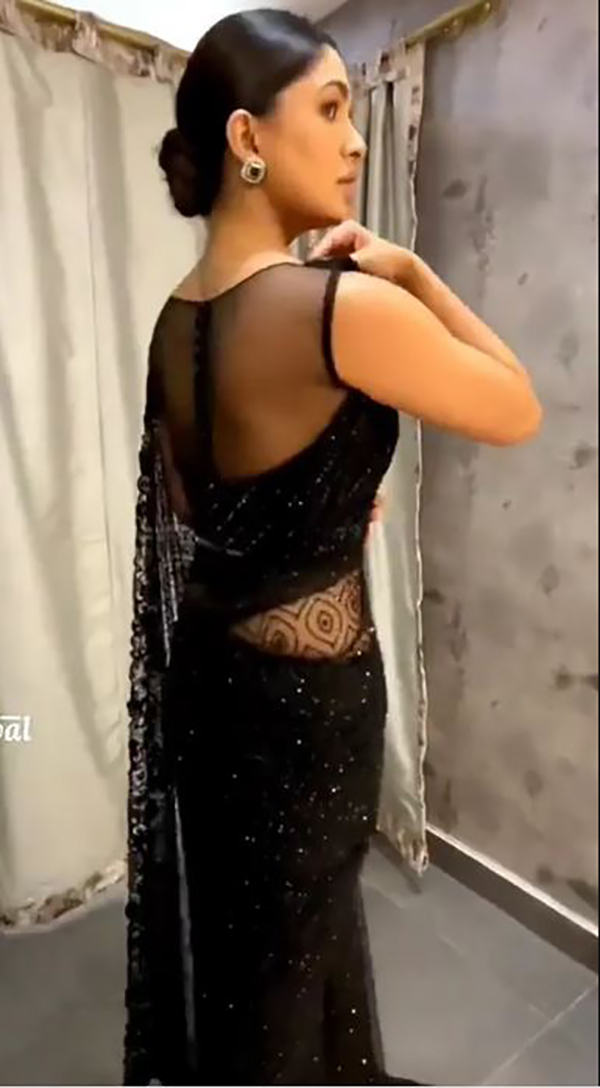 மறுபக்கம் புடவையிலும் கவர்ச்சியாக தோன்ற முடியும் என்று சமீபத்தில் கூறிய நடிகை வாணி போஜன் அதனை நிரூபிக்கும் விதமாக கொசு வலை போன்ற புடவை அணிந்து கொண்டு தன்னுடைய முழு முதுகும் பளிச்சென்று தெரியும்படி குத்த வைத்திருக்கும் புகைப்படங்கள் சிலவற்றை இணையத்தில் வெளியிட்டு இருக்கிறார். இந்த புகைப்படங்கள் இணையத்தில் வெளியாகி ரசிகர்களின் கவனத்தை ஈர்த்து வருகின்றது.