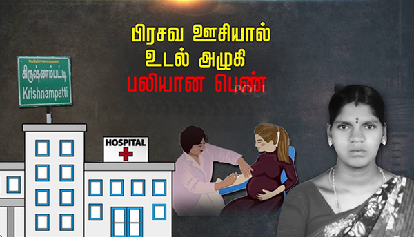 தஞ்சாவூர் ராஜா மிராசுதார் அரசு மருத்துவமனையில் பிரசவத்தின் போது தவறாக போடப்பட்ட ஊசி மருந்து உடலில் செப்டிக் ஆனதால், குழந்தைப்பெற்ற அந்தப்பெண் உடலில் ஒரு பகுதி அழுகி பலியான சம்பவம் கடும் அதிர்ச்சியை ஏற்படுத்தி உள்ளது. மருத்துவர்களின் அலட்சியத்தால் பெற்ற குழந்தையைத் தொட்டுதூக்க இயலாமல், படுத்த படுக்கையாக உயிரிழந்த தாயின் பிரிவு குறித்து விவரிக்கின்றது இந்த செய்தி தொகுப்பு.