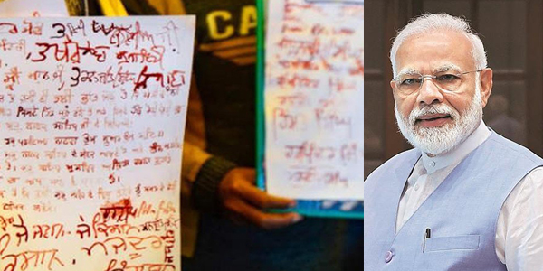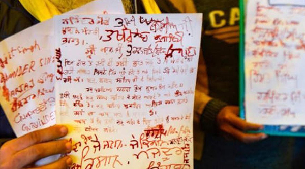 பிரதமராகிய நீங்கள் பா வ ம் செய்கிறீர்கள் – மோ டிக்கு ர.த்.த.த்தில் கடிதம் எழுதிய விவசாயிகள்!!