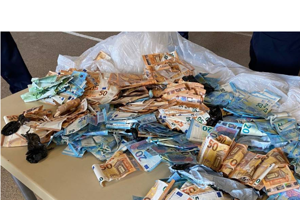 மொத்தமாக 50.000 யூரோக்கள் அவரிடம் இருந்ததாகவும், ஆனால் 47.200 யூரோக்கள் மாத்திரமே கைப்பற்றப்பட்டுள்ளதாகவும் தெரிவிக்கப்பட்டுள்ளது. மீ.தி தாள்கள் குறித்த நீ.ரூ.ற்றின் வடிகால் பகுதிக்குள் நுழைந்து அடைத்துக்கொண்டதாகவும் தெரிவிக்கப்பட்டுள்ளது.