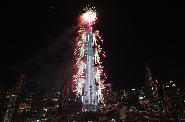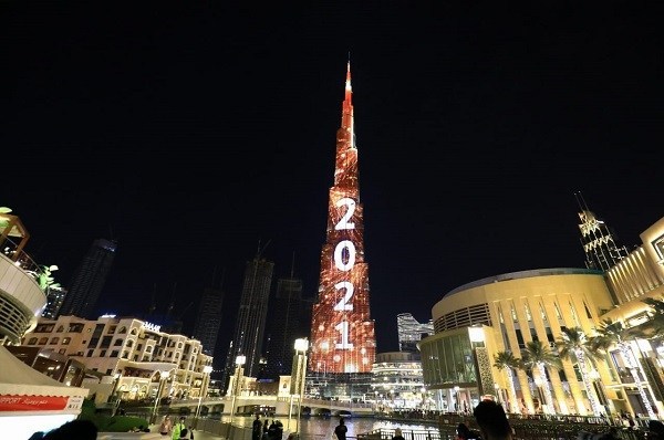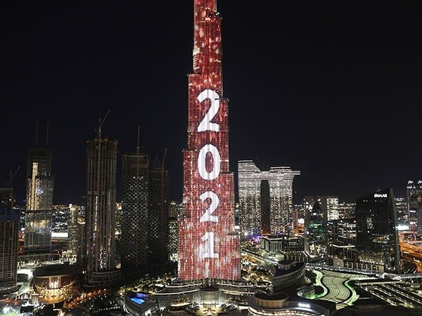 புத்தாண்டை முன்னிட்டு பல்வேறு நாடுகளில் தேசியக் கொடிகள் புர்ஜ் கலிஃபா கோபுரத்தில் இன்று காட்சிப்படுத்தப்பட்டுள்ளன.