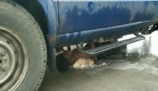 போ.தை.யி.ல் வாகனத்தின் அ.டி.யில் தொங்கிக் கொண்டு பயணித்த ஆசாமி!