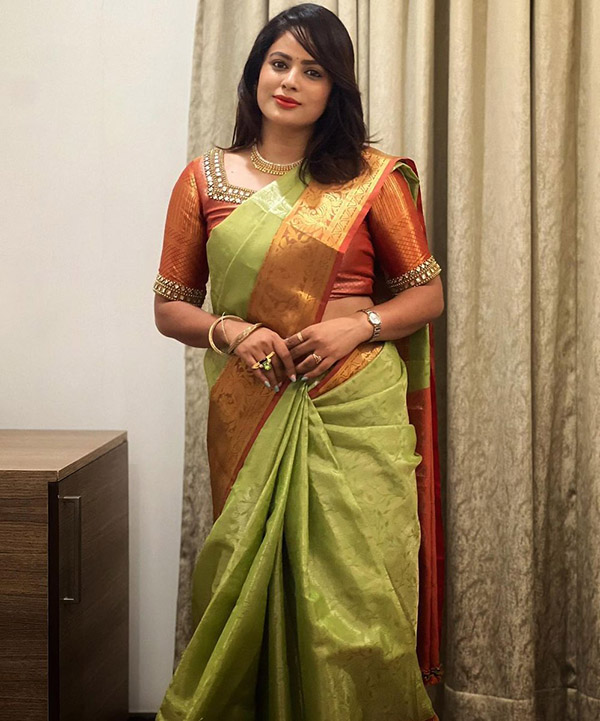 இதை தொடர்ந்து, தற்போது புடவையில் சுட சுட Hot Pose கொடுத்து குளுகுளு புகைப்படத்தை வெளியிட்டு ரசிகர்களின் கண்களுக்கு கவர்ச்சி விருந்து வைத்துள்ளார்.