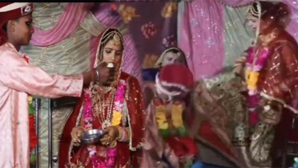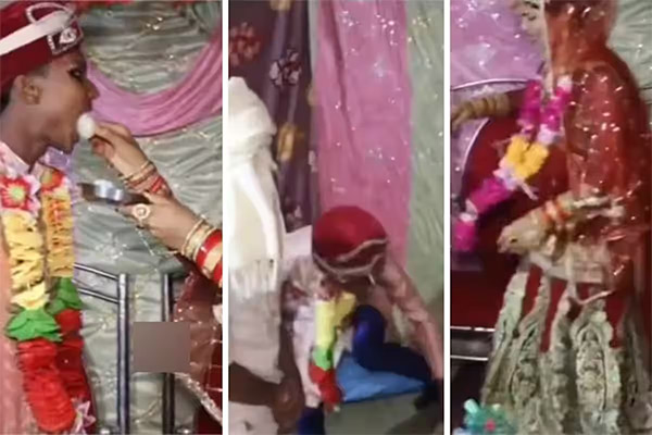 பதிலுக்கு மணமகன் மணப்பெண்ணிற்கு இனிப்பு ஊட்டுகையில் அவர் வாங்க மறுத்துள்ளார். ஒருகட்டத்தில் மணப்பெண்ணின் முகத்திலேயே பூசி விடுகின்றார்.