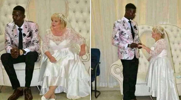 நைஜீரியாவை சேர்ந்த இளைஞன் தன்னை விட மிகவும் வயதான பெண்ணை மணந்து கொண்ட புகைப்படங்கள் வெளியாகியுள்ளது.