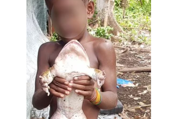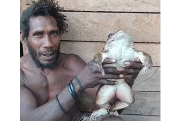 ஒரு மனித குழந்தையின் அளவு உள்ள, ராட்சத தவளை ஒன்றை பிடித்துள்ளார்கள், சாலமோன் தீவுகள் என்ற இடத்தில் வாழும் மக்கள். Jimmy Hugo (35) என்ற ஒருவர்,