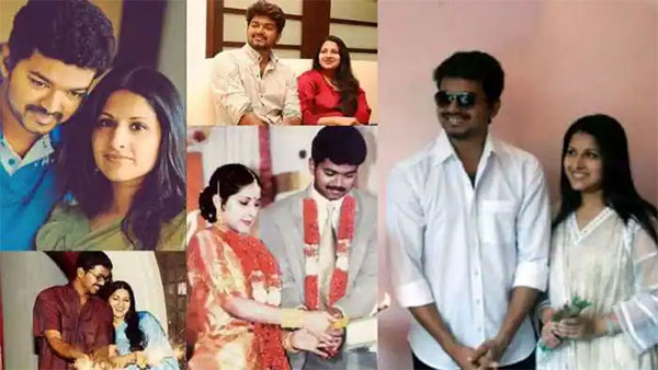 விஜய் பிரித்தானியாவில் பிறந்த இலங்கைத் தமிழரான சங்கீதா சொர்ணலிங்கத்தை 1999 ஆண்டு திருமணம் செய்துக்கொண்டார். சங்கீதா விஜய்யின் தீவிர ரசிகை. ரசிகையாக விஜய்யை சந்திக்க வந்த சங்கீதாவை விஜய்யின் அப்பா அம்மாவிற்கு பிடித்துப்போக தங்கள் வீட்டு மருமகளாக்கிக்கொள்ளலாம் என யோசித்து விஜய்யிடம் கூற அவரும் அதற்கு ஓகே சொல்லிவிட்டாராம். இவர்களது திருமணம் இந்து மற்றும் கிறிஸ்துவ முறைப்படி நடைபெற்றது.