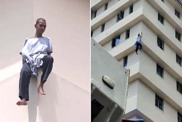 இந்தியாவின் கொல்கத்தா மாநிலத்தில் உள்ள இன்ஸ்டிடியூட் ஆஃப் நியூரோ சயின்ஸ் மருத்துவமனையில் அனுமதிக்கப்பட்டு இருந்த மனநோயாளி சுதிர் அதிகாரி(Sudhir Adhikari)சனிக்கிழமை காலை எப்படியோ மருத்துவமனையின் 8வது மாடியில் உள்ள சன்னல் வழியாக வெளியே வந்து, தளத்தின் நுனிப் பகுதியில் வந்து அமர்ந்துள்ளார்.
