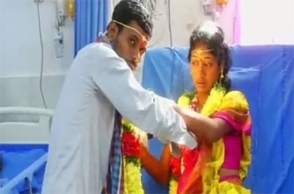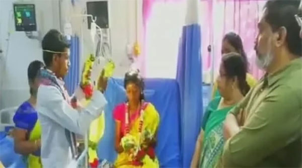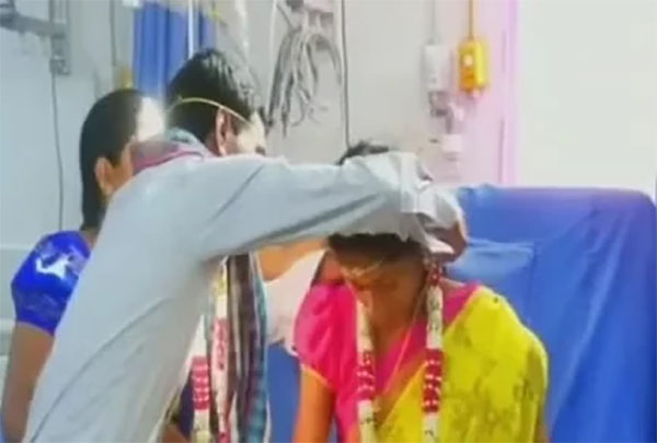 உடல்நிலை சரியில்லாத நிலையில் மருத்துவமனையில் அனுமதிக்கப்பட்டிருந்த மணப்பெண்ணுக்கு மருத்துவமனையிலேயே மாப்பிள்ளை தாலி கட்டிய சம்பவம் அந்தப் பகுதி மக்களை நெகிழ்ச்சி அடைய செய்திருக்கிறது.