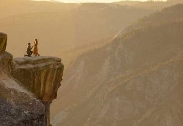 மிக உ ய ரமா ன அந்த மலையின் மீது வைத்து 27 வயது இளைஞர் ஒருவர், தனது காதலியிடம் காதலை வெளிப்படுத்தியுள்ளார். தி டீ ரெ ன காதலனின் செ ய லா ல் ஆச்சரியத்தில் உ றை ந் து போன அந்த பெ ண் ணு ம், கா த லை ம ன தார ஏ ற் றுக் கொ ள் ள, அ டு த் த சில நிமிடங்களிலேயே இ ருவ ருக்கும் பே ர தி ர்ச்சி கா த் திரு ந்தது. ம லை யின் உச்சியில் இருந்த பெ ண், அங்கிருந்து த வ றி கீழே விழ, தனது காதலியைக் கா ப் பாற் ற இ ளை ஞ ரும் அங்கிருந்து கு தி த் துள்ளார்.
