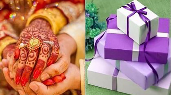 பொதுவாக திருமணத்தில் மணமக்களின் நண்பர்கள் கொடுக்கும் பரிசுகள் எப்போதும் மக்களின் கவனத்தை பெறும். கரண்ட் ட்ரெண்ட்-ற்கு ஏற்றவாறு வெங்காயம், பெட்ரோல் உள்ளிட்ட பரிசு பொருட்களை மணமக்களுக்கு வழங்கும் வீடியோக்களை பார்த்திருப்போம். தங்க செயின்களோடு அணிவகுக்கும் நண்பர்களை கண்டிருக்கிறோம்.
