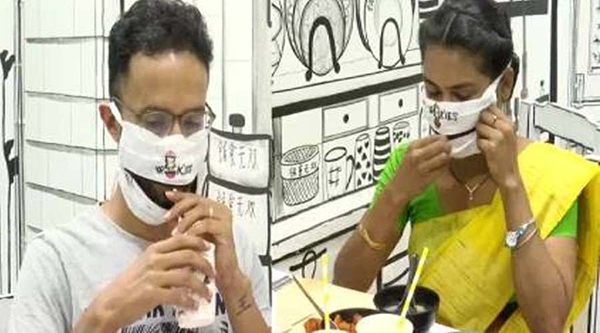 மாஸ்க்கை கழட்டாமல் எப்படி சாப்பிடுவது?… பிரபல உணவகத்தின் அசத்தல் ஐடியா!!