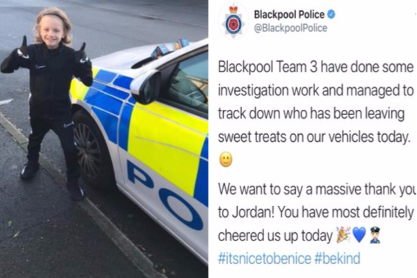 அவரது இந்த செ.ய.ல் பொ.லிசாரை பெரிதும் க.வர்ந்தது. மேலும், அவர் இனிப்புகளை கொடுத்தபோது எடுக்கப்பட்ட புகைப்படத்தை பிளாக்பூல் பொ.லி.ஸார் தங்கள் ட்விட்டர் பக்கத்தில் பகிர்ந்துள்ளார்.