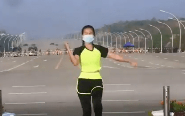 மியான்மரில் அ.சா.தா ரண நி லை ஏ ற் பட்டுள்ள நி.லை.யில், நாடாளுமன்றம் முன் நடனமாடிய பெண் ஒருவர் தொடர்பிலான காணொளி சமூக ஊடகங்கள் வை.ர.லா.கி.யுள்ளது.