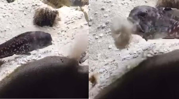 பொதுவாக மனிதர்கள் தான் அதிகமான நேரங்களில் மணலை அள்ளிவிட்டு சா.ப.மி.டுவதை நாம் அவதானித்திருப்போம். ஆனால் இங்கு மீன்கள் அவ்வாறு செய்துள்ளது அனைவரையும் சிலிர்க்க வைத்துள்ளது.
