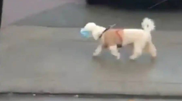 இணையத்தில் நாய் ஒன்று முககவசம் அணிந்து செல்லும் வீடியோ காட்சி ஒன்று வைரலாகி வருகிறது.