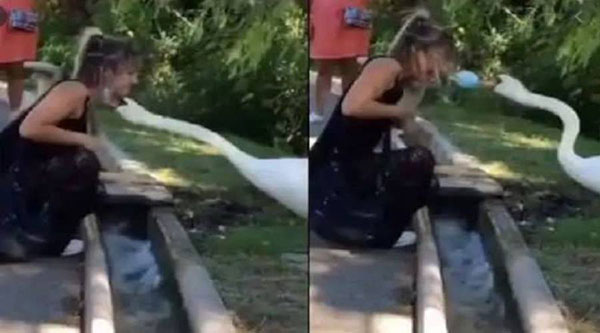 முக கவசத்தை சரியாக அணியாத பெண்ணை தாக்கிய அன்னப்பறவை: ட்விட்டரில் வைரல்