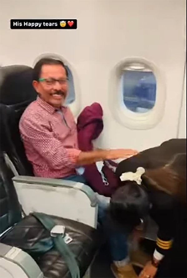 விமானி கேமராவை பார்த்து கையசைப்பதில் துவங்கும் இந்த வீடியோவில், பின்னர் ஜன்னலோரம் அமர்ந்திருக்கும் தனது தந்தையிடம் சென்று ஆசீர்வாதம் பெறும் காட்சிகள் பார்ப்போரை உணர்ச்சிவசப்பட செய்திருக்கிறது.